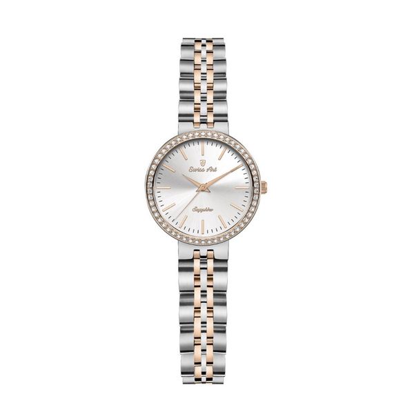 این ساعت زنانه‌ی رسمی با طراحی ظریف و جزئیات درخشان، جلوه‌ای از هنر و دقت سوئیسی را به نمایش می‌گذارد. بدنه‌ی آن از استیل ضدزنگ 316 ساخته شده که علاوه بر دوام بالا، درخشندگی چشم‌نوازی دارد. صفحه‌ی ساعت با شیشه‌ی سافایر محافظت می‌شود که در برابر خط و خش بسیار مقاوم بوده و شفافیت بی‌نظیری را ارائه می‌دهد. موتور Ronda سوئیسی، عملکردی دقیق و بی‌نقص را تضمین کرده و نشان‌دهنده‌ی کیفیت برتر این مدل است. نگین‌های درخشان سواروسکی که با دقت روی قاب ساعت کار شده‌، جلوه‌ای لوکس و بی‌نظیر به آن بخشیده‌است. طراحی باریک و سبک این مدل، آن را به گزینه‌ای ایده‌آل برای استایل‌های رسمی و مجلسی تبدیل کرده است. ترکیب ظرافت در جزئیات و کیفیت ساخت بالا، این ساعت را به یک انتخاب خاص برای بانوانی که به اصالت و زیبایی اهمیت می‌دهند، تبدیل می‌کند.