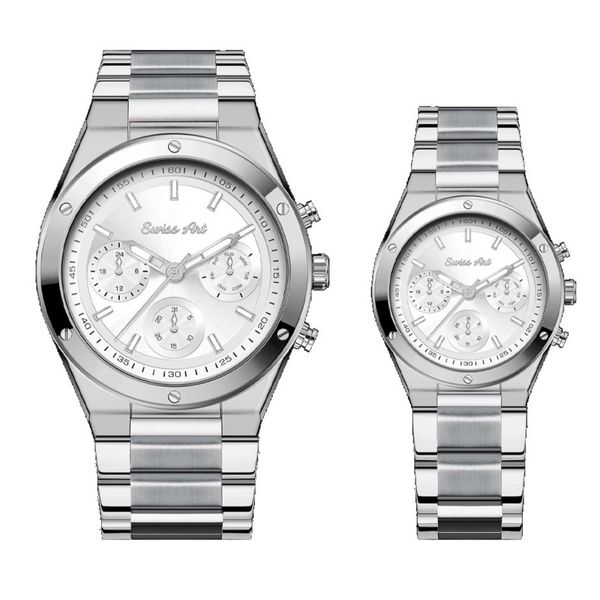 اگر به دنبال ساعتی شیک، ماندگار و متفاوت هستید، ست ساعت سوئیس آرت دقیقا همان انتخابی است که استایل شما را کامل میکند. قاب گرد و بند استیل این ست، در کنار طراحی های مدرن و بهروز، جلوهای لوکس و چشمنواز به آن بخشیده است. وجود سه موتور مختلف روز شمار برای تمام روز های هفته و ماه، این ساعت را به انتخابی کاربردی برای استفاده روزمره تبدیل کردهاست. بدنه استیل باکیفیت آن بدون تغییر رنگ، دوام و ماندگاری طولانیمدت را تضمین میکند. شیشهی سافایر ضدخش خیال شما را از بابت خط و خش راحت میکند تا همیشه ظاهری بینقص داشته باشید. با ست ساعت سوئیس آرت زمان را با حس خاص بودن و اطمینان تجربه کنید.