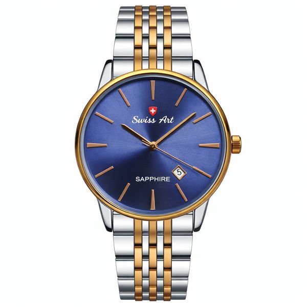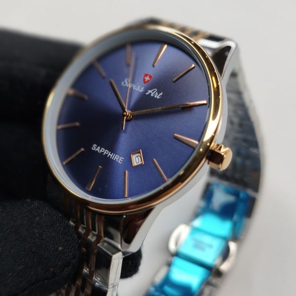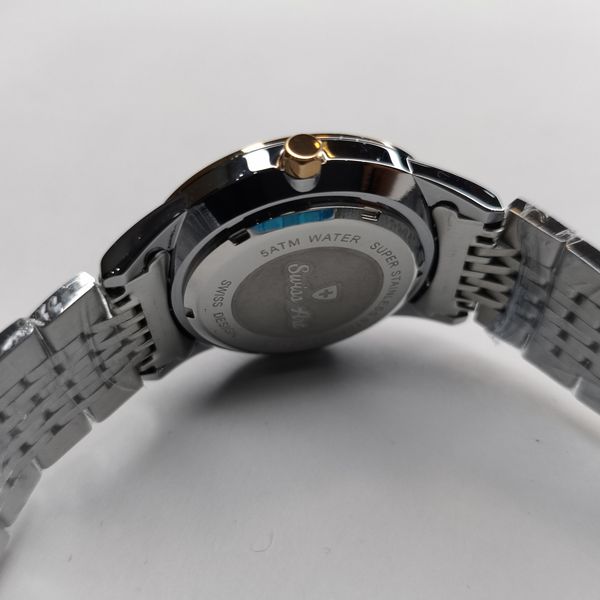 ساعت مچی مردانه سوئیس آرت مدل ANT022SR1606 ترکیبی از ظرافت مهندسی و طراحی مینیمال است که برای آقایان خوش‌سلیقه طراحی شده است. بدنه نقره‌ای این مدل با پرداخت دقیق و ساختار مقاوم، جلوه‌ای لوکس و حرفه‌ای ایجاد می‌کند. ترکیب رنگ نقره‌ای و رزگلد در بند از جنس برس (Brace) علاوه بر زیبایی با ساختار مستحکم و ارگونومیک، علاوه بر دوام بالا، حس استحکام و کیفیت را به‌خوبی منتقل می‌کند. صفحه به رنگ سرمه‌ای هماهنگ با بدنه و بند، جلوه‌ای یکپارچه و چشم‌نواز ساخته که به‌راحتی با استایل رسمی و نیمه‌رسمی ست می‌شود و تصویری از اعتمادبه‌نفس و دقت را در استایل شما تقویت می‌کند. در بخش فنی، این مدل به شیشه سافایر مجهز شده که مقاومت بسیار بالایی در برابر خط و خش دارد و شفافیت صفحه را در طول زمان حفظ می‌کند. بدنه ساعت نیز در برابر ضربه و خراش مقاوم طراحی شده تا در استفاده روزمره، کیفیت و ظاهر اولیه خود را از دست ندهد. قابلیت ضدآب تا عمق 5 اتمسفر، امکان استفاده مطمئن در شرایط روزمره مانند شست‌وشوی دست یا قرار گرفتن در معرض رطوبت را فراهم می‌سازد. همچنین وجود تقویم روزشمار، کارایی ساعت را افزایش داده و دسترسی سریع به تاریخ را برای شما ممکن می‌کند. سوئیس آرت ANT022SR1606 انتخابی هوشمندانه برای آقایانی است که به دنبال ساعتی کلاسیک، دقیق و در عین حال مدرن هستند. ظرافت طراحی در کنار استحکام ساخت، این مدل را به گزینه‌ای ایده‌آل برای جلسات کاری، مهمانی‌های رسمی و حتی استفاده روزمره تبدیل کرده است. اگر به دنبال ساعتی هستید که هم‌زمان نمایانگر شخصیت حرفه‌ای و سلیقه خاص شما باشد، این مدل می‌تواند همراهی ماندگار و ارزشمند برای شما باشد.