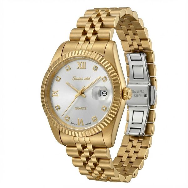ساعت مچی زنانه سوئیس آرت مدل 920124GD0313 انتخابی ظریف و دقیق برای بانوانی است که به دنبال یک ساعت زنانه با کیفیت ساخت بالا و طراحی ماندگار هستند. این مدل با ترکیب رنگ طلایی و نقره‌ای، جلوه ای متعادل و رسمی ایجاد کرده که به راحتی با استایل های روزمره، اداری و نیمه رسمی هماهنگ می شود. استفاده از متریال فلزی با پرداخت دقیق، حس یک ساعت با ارزش و بادوام را در نگاه اول منتقل می کند. در قلب این ساعت، موتور کوارتز سوئیسی قرار دارد که دقت عملکرد بالا و ثبات زمان سنجی را تضمین می کند. این ویژگی باعث می شود ساعت 920124GD0313 در دسته ساعت های ارزان با عملکرد قابل اعتماد قرار بگیرد؛ گزینه ای مناسب برای افرادی که به اصالت موتور و کیفیت فنی اهمیت می دهند. شیشه سافایر استفاده شده روی صفحه نیز مقاومت بالایی در برابر خط و خش ایجاد کرده و شفافیت صفحه را در طول زمان حفظ می کند. بدنه و بند ساعت از استیل ضدزنگ ساخته شده اند که در برابر رطوبت و استفاده روزمره مقاومت مناسبی دارند. آبکاری رنگ طلایی، جلوه ای کلاسیک و زنانه به ساعت داده و در کنار صفحه نقره‌ای، ظاهر ظریف و چشم نوازی ایجاد کرده است. نشانگرهای کریستالی روی صفحه، علاوه بر زیبایی بصری، خوانایی مناسبی را نیز فراهم می کنند. نمایش تاریخ با پنجره مجزا یکی دیگر از ویژگی های کاربردی این مدل است که بدون شلوغ کردن صفحه، اطلاعات لازم را در اختیار کاربر قرار می دهد. مقاومت در برابر آب تا سطح 5 ATM، این ساعت را برای استفاده روزمره، شست وشوی دست و قرار گرفتن در شرایط عادی رطوبتی مناسب کرده است. قفل کلیپسی فلزی نیز باعث سهولت در استفاده و ثبات ساعت روی مچ دست می شود. در مجموع، ساعت سوئیس آرت مدل 920124GD0313 ترکیبی از طراحی ظریف زنانه، کیفیت ساخت قابل اعتماد و مشخصات فنی مناسب است که آن را به گزینه ای منطقی برای خرید یک ساعت زنانه با ارزش خرید بالا تبدیل می کند.