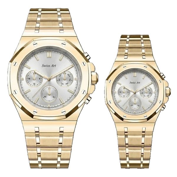 اگر به دنبال ساعتی شیک، ماندگار و متفاوت هستید، ست ساعت سوئیس آرت دقیقا همان انتخابی است که استایل شما را کامل میکند. قاب گرد و بند استیل این ست، در کنار طراحی های مدرن و بهروز، جلوهای لوکس و چشمنواز به آن بخشیده است. وجود سه موتور مختلف روز شمار برای تمام روز های هفته و ماه، این ساعت را به انتخابی کاربردی برای استفاده روزمره تبدیل کردهاست. بدنه استیل باکیفیت آن بدون تغییر رنگ، دوام و ماندگاری طولانیمدت را تضمین میکند. شیشهی سافایر ضدخش خیال شما را از بابت خط و خش راحت میکند تا همیشه ظاهری بینقص داشته باشید. با ست ساعت سوئیس آرت زمان را با حس خاص بودن و اطمینان تجربه کنید.